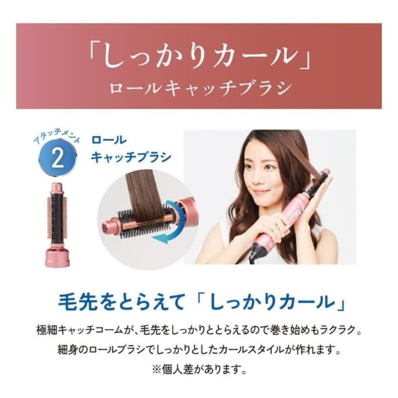 アタッチメント:心地いいソフト素材のワイドスタイリングブラシと、カールスタイルが作れるロールキャッチブラシの2種類