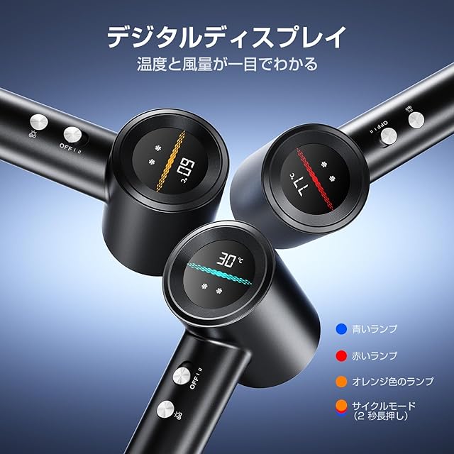 「温度の見える化」で髪ダメージゼロ革命! 高精細 LED 画面搭載のこのヘアドライヤーは、「感覚調温」の時代を終わらせます――風量・温度を数値でリアルタイム表示し、ドライヤー 速乾を精密にコントロール。 3 色スマート温度ガイド(ブルー / オレンジ / レッド)で最適熱管理を実現し、ドライヤー 大風量の速乾効果と髪ケアを両立。サロン級つや髪と家庭用効率を兼ね備え、ドライヤー 人気 ランキングを常にリードしています。