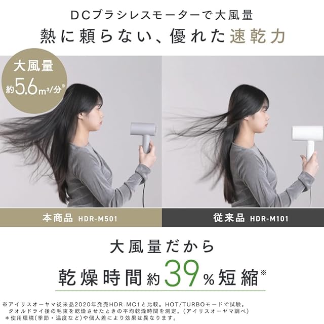 商品名:アイリスオーヤマ イオンドライヤー 速乾 軽量 380g コンパクト 大風量 マイナスイオン HDR-M501-H ダークグレー