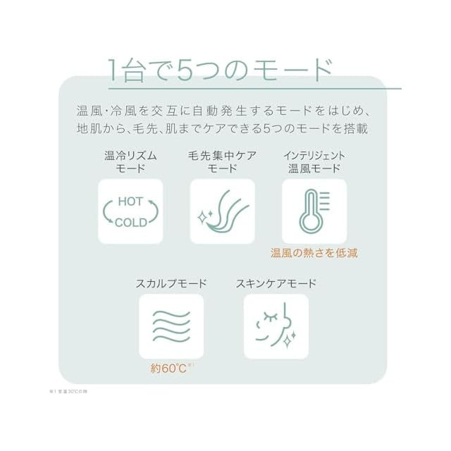 【温風温度(室温30 ℃の時)】約100 ℃(AC100/200 V・DRY/HOT時)/約125 ℃(AC120/240 V・DRY/HOT時) (スカルプモード時 約60 ℃(AC100/200 V)