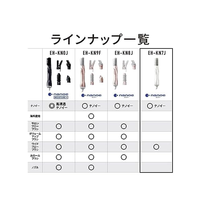 ●ナノイーで髪と地肌をいたわり、しっとりまとまる髪へ●ナノイーで髪と地肌をいたわりながらキューティクルを引き締め、しっとりまとまる髪へ 通常のマイナスイオンの1000倍※1の水分を含むナノイーで、キューティクルケア 地肌のストレスの原因となる乾燥を抑え、うるおい地肌へ。※1 一般的な空気イオン(代表的な粒子径:1.3nm)とナノイー(代表的な粒子径:13nm)との比較(当社調べ)●付属品 ワイドブローブラシ●【サイズ】●商品_高さ:340mm●商品_幅:69mm●商品_重量:0.38kg