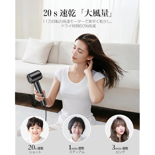 ⚡ 【プロも認める超高速モーターで、ドライ時間を最大60%短縮】BGBの速乾ドライヤーは最新の高速デジタルモーターを搭載し、従来のヘアドライヤーを凌ぐ風量を実現!髪を素早く乾かすだけでなく、スタイリング時間も大幅に短縮。忙しい朝や急いでいる時にも、プロのような仕上がりを簡単に実現できます。