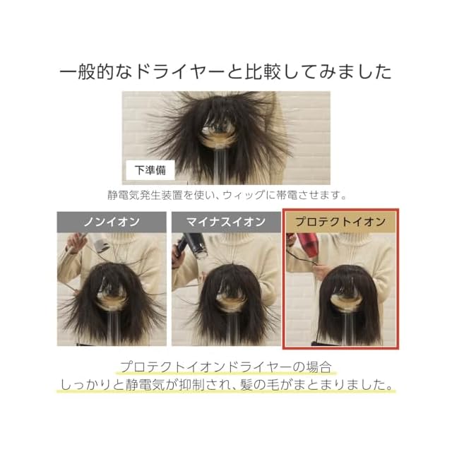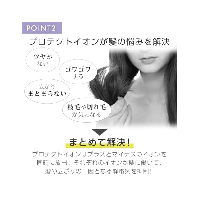 乾燥や髪摩擦による静電気の発生が、速乾ドライヤーの課題。プロテクトイオンは静電気を抑制し、ワンランク上の美髪に導きます。