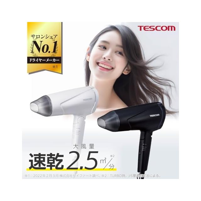 風量×風圧×ハイパワーのベストバランスによって、テスコム史上最速乾(※2)を実現しました。 大風量:業界最大級(※3)の2.5m3/分(※4)(JIS基準) 大風圧:従来機種(※5)から134%にUP ハイパワー: 1400W(※6)のパワーで大風量でもしっかり温かい風を送ります。