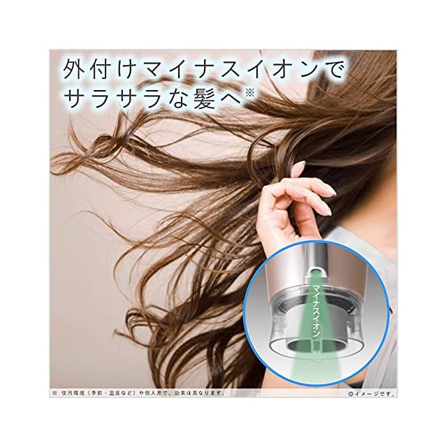 外付けマイナスイオンで、マイナスイオンに含まれる水分を熱から守り、髪にしっかり届いて、さらさらな髪へ※1。