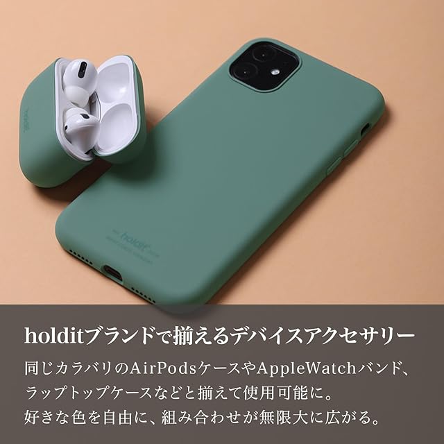 ワンランク上のシリコンケース。シンプルで上品な北欧デザイン。<br>holditブランドが手掛けるシリコンケースはよりスマホに密着した機能的かつ、手元をオシャレ部。<br>同じカラバリのAirPodsケースやAppleWatchバンド、ラップトップケースなどと揃えて使用可能に。好きな色を自由に、組み合わせが無限大に広がる。<br>30色以上のカラーバリエーション。くすみカラーからビビットカラーまで、豊富なカラーバリエーション。お好きな色を楽しむことができます。<br>シリコンケースが選ばれる6つの理由は「1.なめらか手触りのシリコン」・「2.強力なグリップで滑りにくい」・「3.厚さ0.8mmの超極薄ケース」・「4.iPhone専用に設計されたフォルム」・「5.ワイヤレス充電対応」・「6.同じカラバリのデバイスアクセサリー」<br>【カラー:Moss Green モスグリーン】<br>知的で落ち着いた深い緑色。<br>カジュアルを大人っぽく引き締め、持っているだけでオシャレでスマートな印象に。