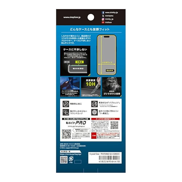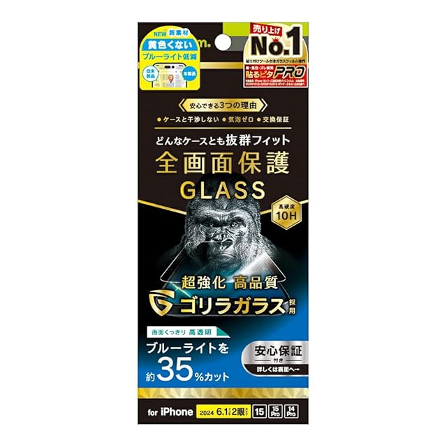 商品名:Simplism シンプリズム iPhone 16 / 15 / 15 Pro / 14 Pro ケース干渉なし ゴリラガラス 黄色くないブルーライト低減 画面保護強化ガラス TR-IP24M2-GLS-GOB3CC