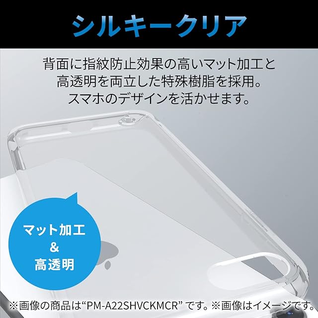 背面には指紋防止のマット加工と高透明を両立した特殊樹脂を採用しました。機器本体のカラーをいかせるシルキークリアタイプです。<br>