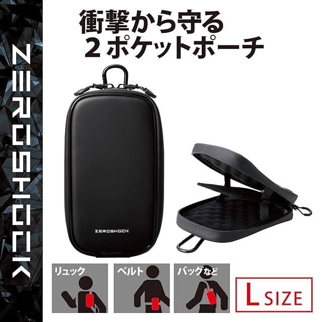 エレコム スマホポーチ 2台収納 Lサイズ 3Way (腰ベルトループ ショルダーベルトループ カラビナフック) 衝撃吸収 ZEROSHOCK ブラック 【iPhone 16 / 16e シリーズ 対応検証済】 P-05CZ2BK | LIS MART
