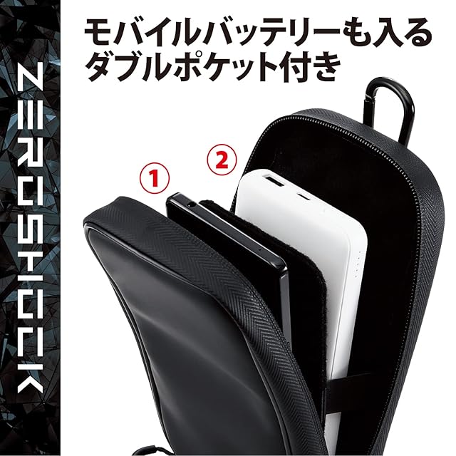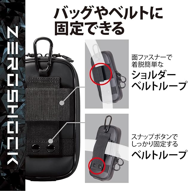 商品名:エレコム スマホポーチ 2台収納 Lサイズ 3Way (腰ベルトループ ショルダーベルトループ カラビナフック) 衝撃吸収 ZEROSHOCK ブラック 【iPhone 16 / 16e シリーズ 対応検証済】 P-05CZ2BK