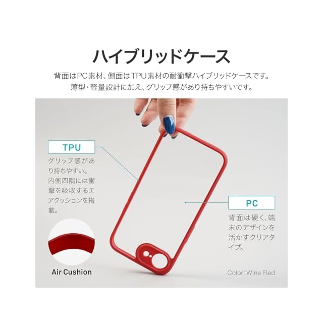 【耐衝撃】 衝撃を吸収するTPUと、硬く高透明なポリカーボネートのハイブリッドケース