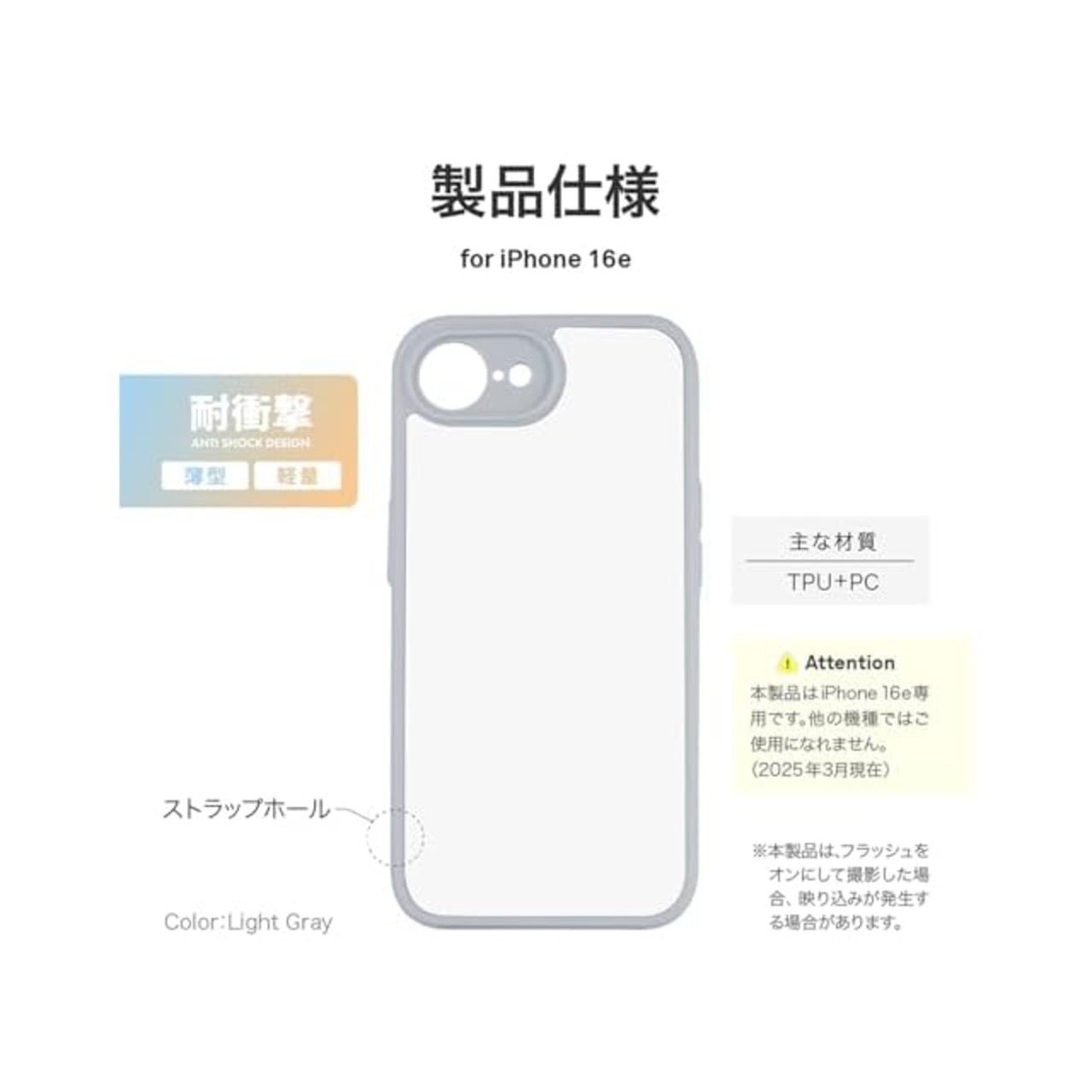 商品名:ルプラス LEPLUS iPhone 16e 耐衝撃ハイブリッドケース 「Velta」 ライトグレー LN-ISS24UKHLGY