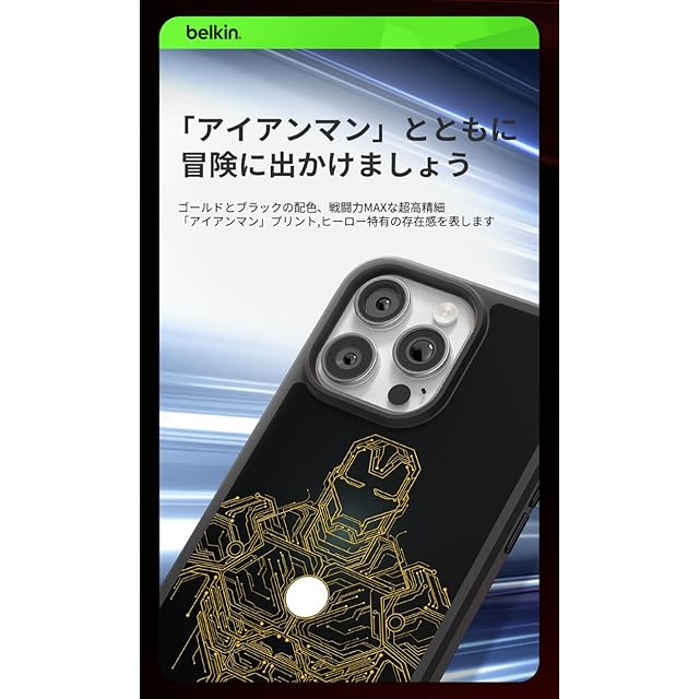 【ディズニー創立100周年 マーベル アイアンマン 限定モデル】Belkin iPhone 14 Pro用ケース MagSafe対応 マグネット搭載 薄型 超耐衝撃 UV耐性 黄ばみ防止 ソフトTPU MSA010qcBG-DY | LIS MART