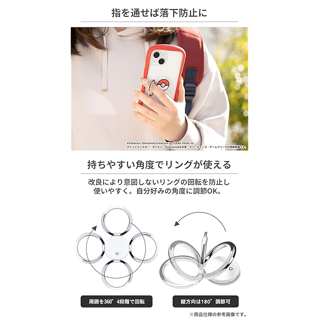 お気に入りのモンスターボールのデザインのスマホリングを見つけよう<br><br>iFace Finger Ring Holderから「ポケモン」のモンスターボールのデザインのスマホリングが登場しました。<br><br>モンスターボール、スーパーボール、ハイパーボール、マスターボール、プレミアボール、ムーンボール、ダイブボール、ゴージャスボール、ラブラブボール、クイックボールの全10種類!<br>お気に入りのモンスターボールを使ったり、好きなポケモンに合わせてケースとコーデしてみたり、色々とアレンジを楽しめちゃいます。<br>シンプルなデザインなので、ポケモンのデザインのiFaceとの組み合わせもバッチリ。<br><br><br>フラットな背面なので、ケース背面を下にして置いた時のガタつきを軽減。<br>またポケットにもスルッと入るので、ズボンやシャツのポケットに入れて持ち運ぶ方にもおすすめです。<br><br>360度くるくると回転するので、操作しやすい指の位置に合わせて使用できます。<br>スマホスタンドとして使用する時も角度調整OK。<br><br>・さらっとしたマットな質感<br>・指を通すだけで落下を防止<br>・強力な両面テープ式、貼るだけ簡単取り付け<br>・持ちやすい角度に調節OK<br><br><br>●本製品ご使用における人体・スマートフォン本体を含む持ち物・データなどの損傷、損失、紛失に対し、弊社は一切の責任を負いかねます。<br>●スマートフォンやケースの重量、形状、材質により貼り付け強度に差が生じます。<br>●時間と共に粘着力が増す仕様のため、貼り付け1~2時間後にしっかりと固定されていることを確認してご使用ください。<br>●本製品は貼り直しができません。<br>●ガラス素材のスマートフォンやケースをご利用の際は、付属の粘着補助シートをご使用ください。<br>●粘着補助シートは貼り直しができません。<br>●すりガラス素材にはご使用できません。市販のポリカーボネート製ケースなどと併用してください。<br>●落下防止のため、リング部分のみで機器を持ち上げることはおやめください。<br>●ご利用状況・環境、溶剤の使用などにより変色や変質が起きることがあります。<br>●小さな部品がありますので誤飲にご注意ください。<br>●本製品およびパッケージは改良のため予告なく仕様を変更する場合があります。<br>●記載されている製品名・会社名などは各社の商標または登録商標です。<br><br>商品仕様<br>本体:約縦6.4×横3.5×厚0.6cm<br>重量:約17g<br>主素材:ポリカーボネート、亜鉛合金、磁石<br>付属品:粘着補助シート<br>