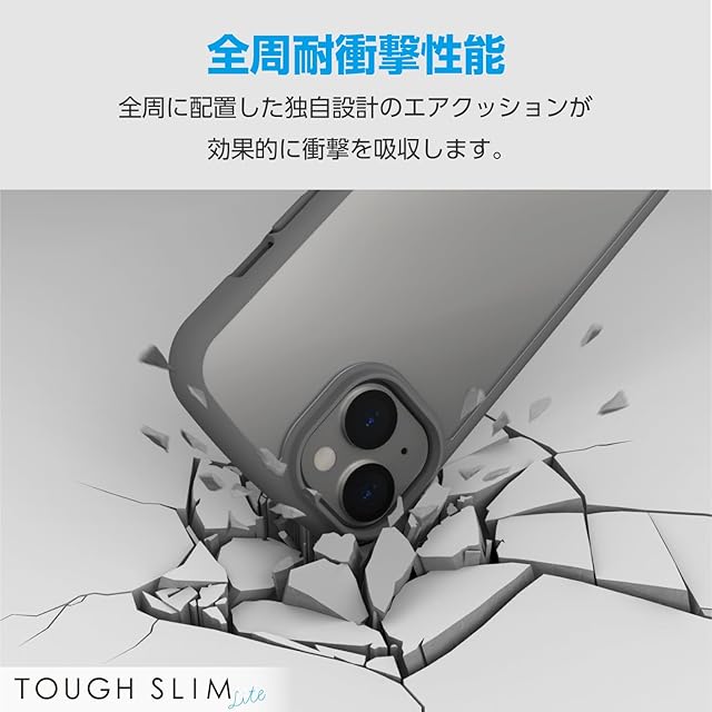 商品名:エレコム iPhone15 ケース TOUGH SLIM LITE 耐衝撃 衝撃吸収 薄型 軽量 ストラップシート付き ストラップホール付き [全周配置のエアークッションが衝撃を吸収] グレー PM-A23ATSLFCGY