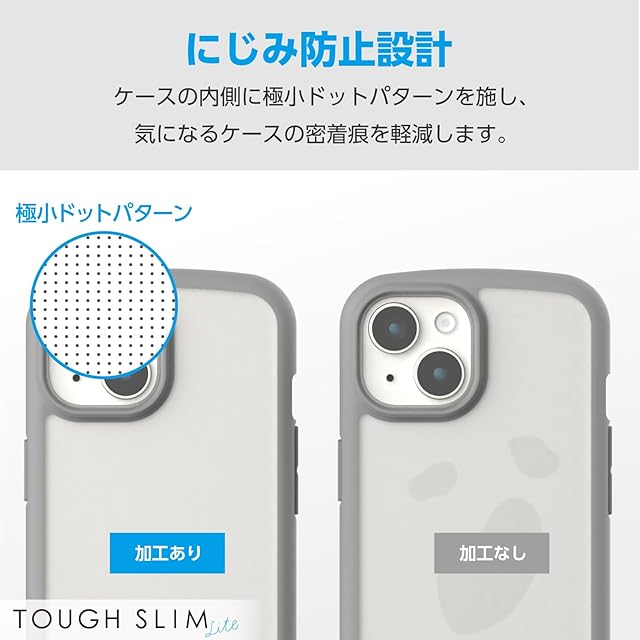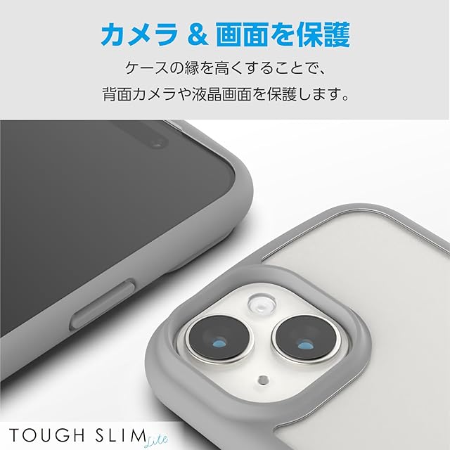 エレコム iPhone15 ケース TOUGH SLIM LITE 耐衝撃 衝撃吸収 薄型 軽量 ストラップシート付き ストラップホール付き [全周配置のエアークッションが衝撃を吸収] グレー PM-A23ATSLFCGY | LIS MART