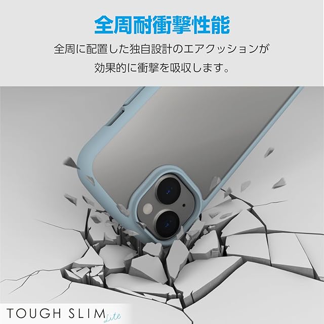 商品名:エレコム iPhone15 ケース TOUGH SLIM LITE 耐衝撃 衝撃吸収 薄型 軽量 ストラップシート付き ストラップホール付き [全周配置のエアークッションが衝撃を吸収] ブルー PM-A23ATSLFCBU