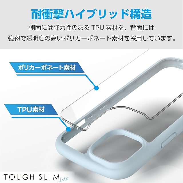 エレコム iPhone15 ケース TOUGH SLIM LITE 耐衝撃 衝撃吸収 薄型 軽量 ストラップシート付き ストラップホール付き [全周配置のエアークッションが衝撃を吸収] ブルー PM-A23ATSLFCBU | LIS MART