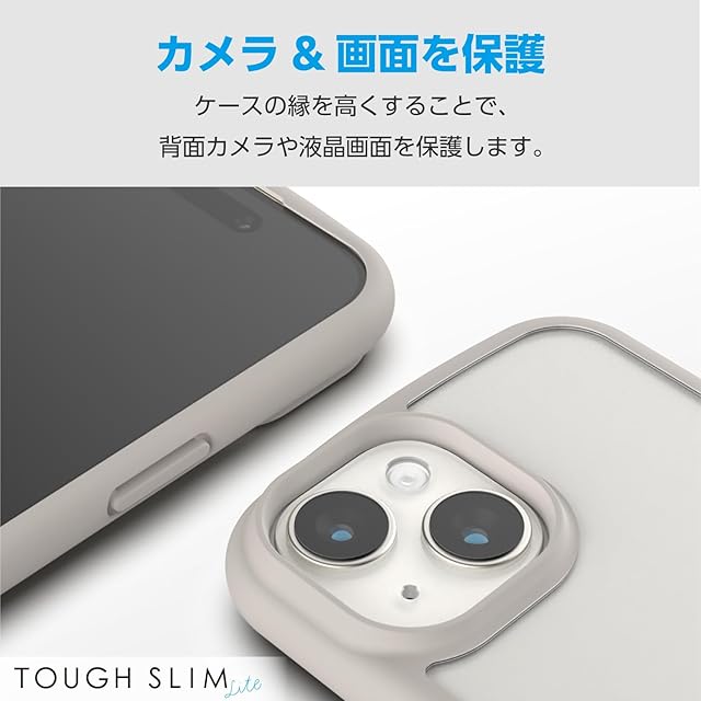 エレコム iPhone15 ケース TOUGH SLIM LITE 耐衝撃 衝撃吸収 薄型 軽量 ストラップシート付き ストラップホール付き [全周配置のエアークッションが衝撃を吸収] グレージュ PM-A23ATSLFCGB | LIS MART