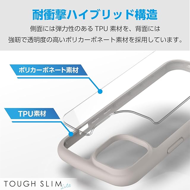 商品名:エレコム iPhone15 ケース TOUGH SLIM LITE 耐衝撃 衝撃吸収 薄型 軽量 ストラップシート付き ストラップホール付き [全周配置のエアークッションが衝撃を吸収] グレージュ PM-A23ATSLFCGB