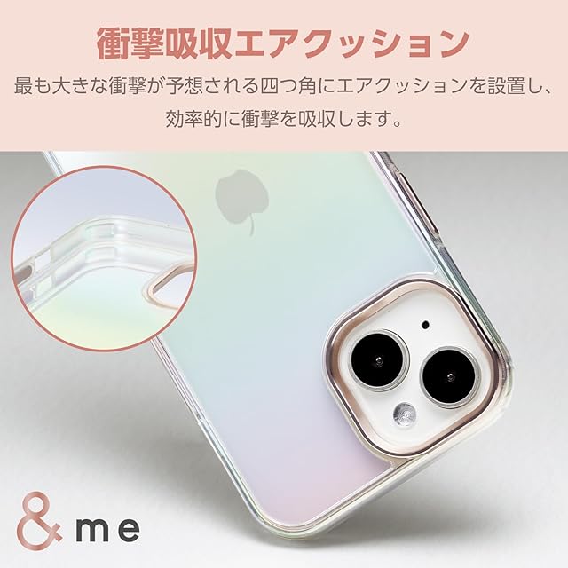 商品名:エレコム iPhone15 ケース &me オーロラ 可愛い おしゃれ ハイブリッド素材 四つ角エアークッション ストラップホルダー付属 ストラップホール付き クリア PM-A23AHVCACR