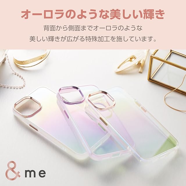 商品名:エレコム iPhone15 ケース &me オーロラ 可愛い おしゃれ ハイブリッド素材 四つ角エアークッション ストラップホルダー付属 ストラップホール付き ラベンダー PM-A23AHVCAPU