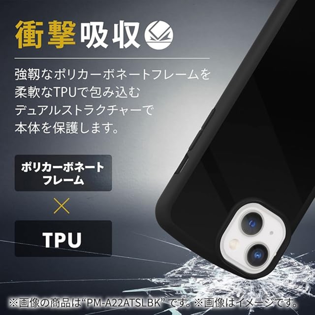 全周に配置した独自設計のエアクッションが衝撃を吸収し、背面には高硬度の特殊樹脂を採用した、iPhone 14/iPhone 13用TOUGH SLIM LITEケースです。