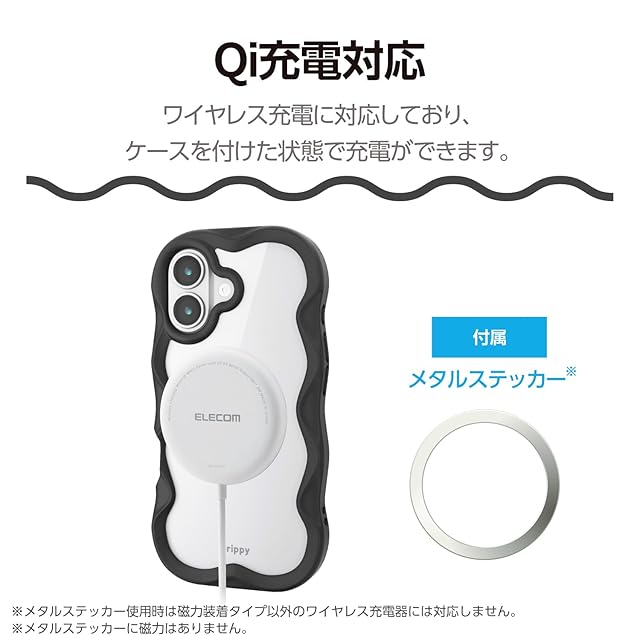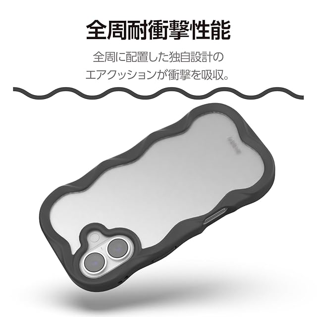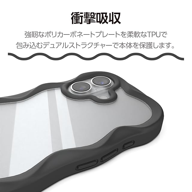 商品名:エレコム iPhone 17 ケース カバー クリア ウェーブ形状 手にフィット 耐衝撃 衝撃吸収 ハイブリッド TPU ストラップホール付き カメラ保護 メタルステッカー付属 ストラップシート付き ブラック PM-A25AFCWAVEBK