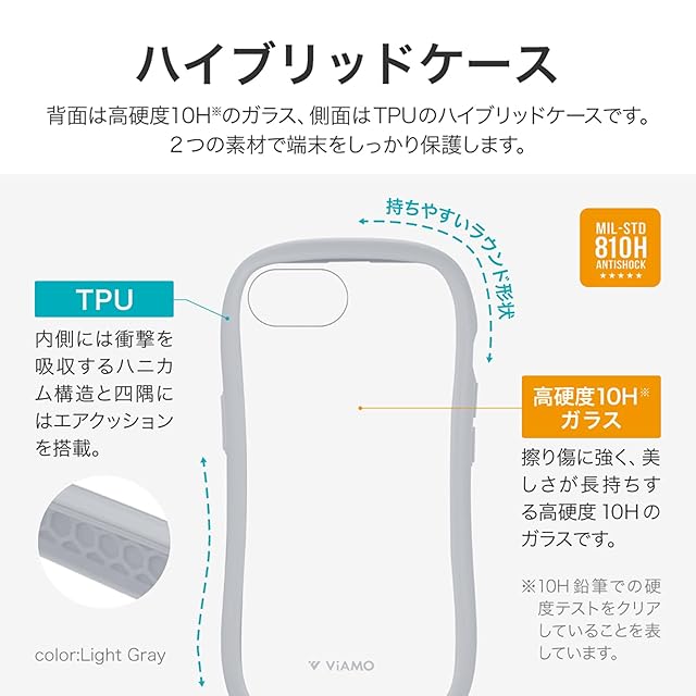 【60日間】【耐衝撃】 衝撃を吸収・分散するハニカム構造のTPUと、高硬度10Hで傷に強いガラスのハイブリッドケース