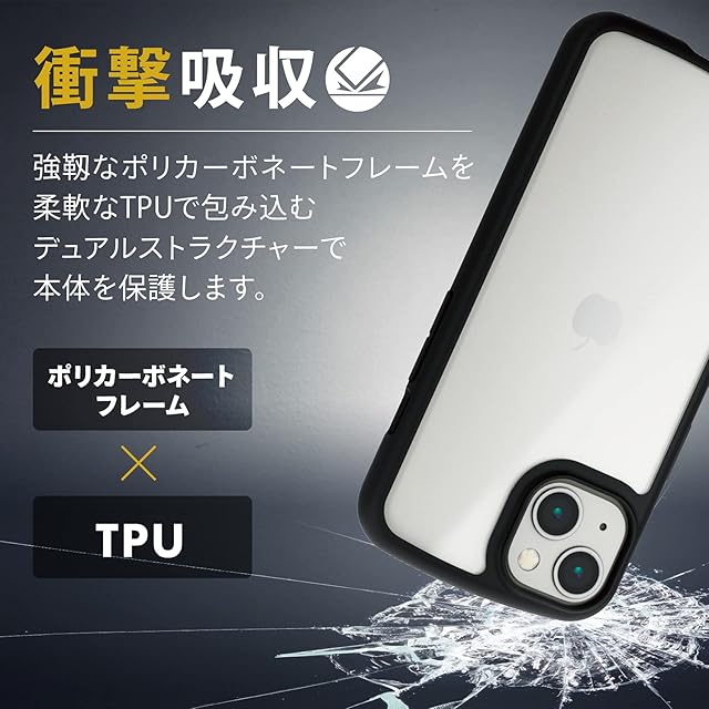 商品名:エレコム iPhone 13/ハイブリッドケース/シルキークリア/ブラック