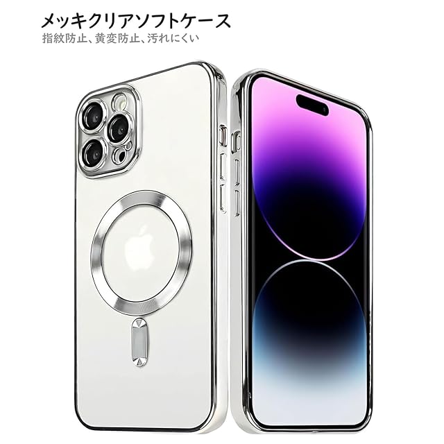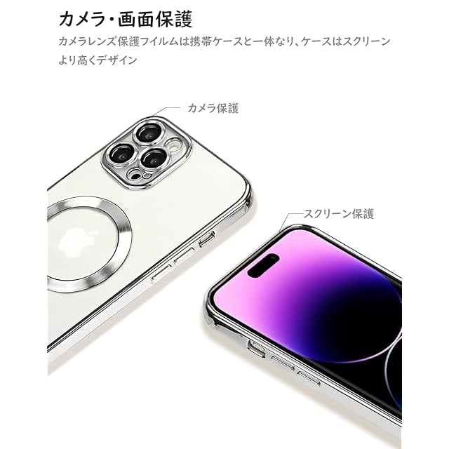 iPhone 12/13/14/15クリアソフトケース Magesafe対応 メッキ加工フーレム 光沢 高透明背面 薄型 お洒落<br><br> 材質:TPU<br> カラー:ゴールド、シルバー、ブラック、ブルー、グリーン、ピンク、パープル<br><br> 対応機種:<br> iPhone12 <br> iPhone 12mini<br> iPhone 12Pro <br> iPhone 12Pro Max<br> iPhone13 <br> iPhone 13mini<br> iPhone 13Pro <br> iPhone 13Pro Max<br> iPhone14 <br> iPhone 14Plus<br> iPhone 14Pro <br> iPhone 14Pro Max<br> iPhone15 <br> iPhone 15Plus<br> iPhone 15Pro <br> iPhone 15Pro Max<br><br> 商品の特徴:<br> クリアソフトケース、高透明、iPhone 背面のデザインにも綺麗に確認できます。<br> 一体型カメラレンズ保護、カメラ周りを極限まで保護する精密設計でカメラレンズに傷が付きにくい 、感光も遮らないです、撮影の画質に影響ありません。<br> MagSafe対応、バックパネルに強力なマグネットが内蔵されており、MagSafe対応充電器および各種MagSafe専用アクセサリーが誤差なくくっつきます。MagSafeアクセサリーと一緒に使うと、適切な位置にきちんと引っ付き、より簡単により速く充電できます。 <br> 精密な穴開け、iPhone とぴったりフィットします。各ボタンや穴にしっかりと合う、ケースをつけたままコネクタへの接続もワイヤレス充電も問題なく使えます。 <br> 下部スピーカーの所に高密度メッシュ穴開けデザイン、 防塵・防汚、全面保護。<br> 弾性があるボタン、押しやすい、ケースをつけたボタン押すはiPhoneに損害ないです。<br> 耐衝撃保護、柔軟なTPU素材を採用して、フレキシブル、耐衝撃に優れます。<br> フレームはメッキ加工で、配色が綺麗、光沢感抜群、随分お洒落です。<br> 薄型デザイン、滑らかな触感、手グリップ感が心地良いです。<br> ソフトケースで、脱着易い、工具不要、装着したまま、ケーブルで有線充電することができる、Qi無線ワイヤレス高速充電には影響しません。 <br><br> パッケージ内容<br> クリアソフトケースx1<br>