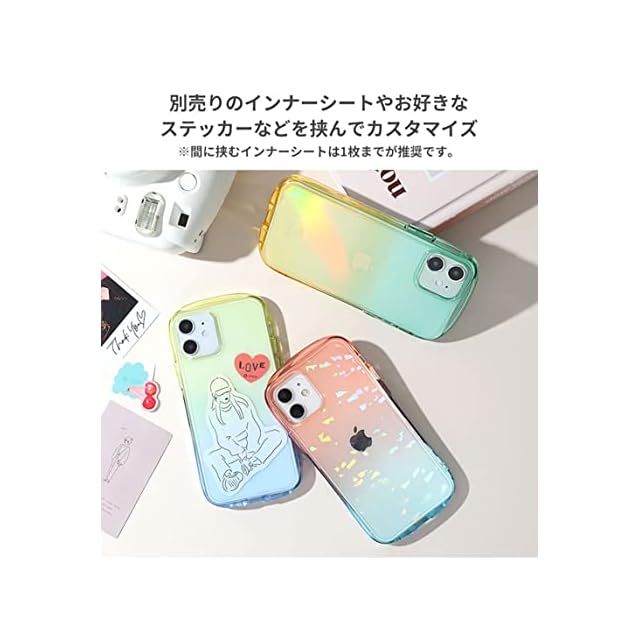 iPhoneの色を透かして自分なりのグラデーションカラーを楽しむのもよし、iFaceのインナーシート(1枚推奨)を挟んでアレンジしてもOK。フチの透け感が可愛いので、淡い色の機器はもちろん、濃い色の機器でも楽しめます。