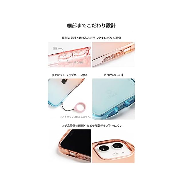 Color Me Pop!甘くておいしそうなグラデーションカラー<br><br>シンプルさが特徴のオールクリアのiFace Look in Clearシリーズに、グラデーションカラーが印象的なLolly(ロリー)が仲間入りしました。キャンディみたいなポップなカラーで、持っているだけで気分が上がっちゃう! <br>iPhoneの色を透かして自分なりのグラデーションカラーを楽しむのもよし、iFaceのインナーシート(1枚推奨)を挟んでアレンジしてもOK。フチの透け感が可愛いので、淡い色の機器はもちろん、濃い色の機器でも楽しめます。 <br><br>・ドット加工で密着痕を防ぐ <br>・「くびれ」と「適度な厚み」で持ちやすい <br>・ストラップホール付き <br>・iFaceスマホリング、iFace画面保護シートとの併用も可能 <br>※iFaceスマホリングと併用する際には一日ほど置くとしっかり貼り付きます。 <br><br>●本製品ご使用における人体・スマートフォン本体を含む持ち物・データなどの損傷、損失、紛失に対し、弊社は一切の責任を負いかねます。<br>●スマートフォン本体やケースに発熱などの異常がある場合は本製品を外してください。<br>●画面保護フィルムの形状により本製品と併用できない場合があります。<br>●背面カメラでの撮影時に写り込みが起こる場合があります。<br>●本製品は個別に特殊な方法で着色しているため、色の濃淡や模様には個体差があります。<br>●製品に入っているドット加工は、スマートフォン本体との密着痕を防ぐためのものです。<br>●ご使用の充電器や環境によってワイヤレス充電がご利用いただけない場合があります。<br>●ご利用状況・環境、溶剤の使用などにより変色や変質が起きることがあります。<br>●本製品装着やOSアップデートにより、スマートフォンの一部機能が使えなくなる可能性があります。<br>●本製品およびパッケージは改良のため予告なく仕様を変更する場合があります。<br>●記載されている製品名・会社名などは各社の商標または登録商標です。<br><br>商品仕様 <br>14 Pro:約縦15.9×横7.9×厚1.4cm、重量約31g<br>ストラップ使用:可 <br>主素材:TPU <br>:有(30日間)<br>