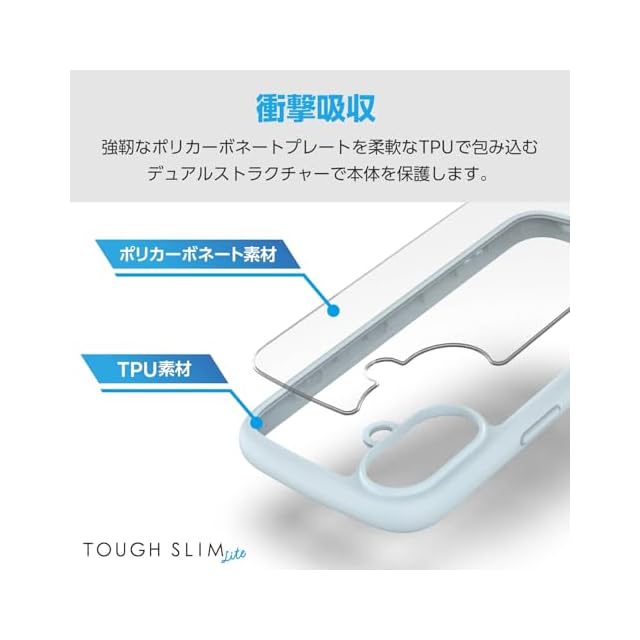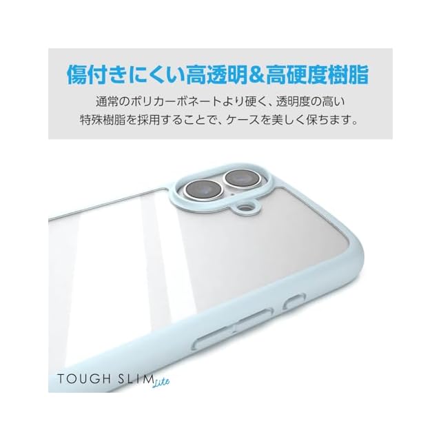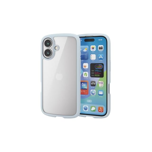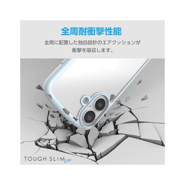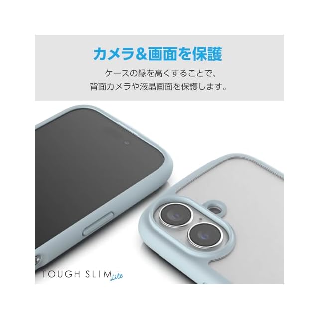 エレコム iPhone 16 ケース クリア 耐衝撃 衝撃吸収 フレームカラー ハイブリッド 薄型 軽量 ワイヤレス充電 ストラップホール付き 全周エアークッション ストラップホルダーシート付 ライトブルー PM-A24ATSLFCBU | LIS MART