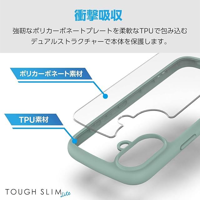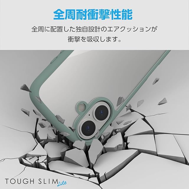 全周に配置した独自設計のエアークッションが衝撃を吸収し、背面には高硬度のポリカーボネートを採用した、TOUGH SLIM LITEケースです。