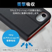 本体装着部分に衝撃を吸収するTPU素材を使用し、機器本体を衝撃から守ります。<br>
