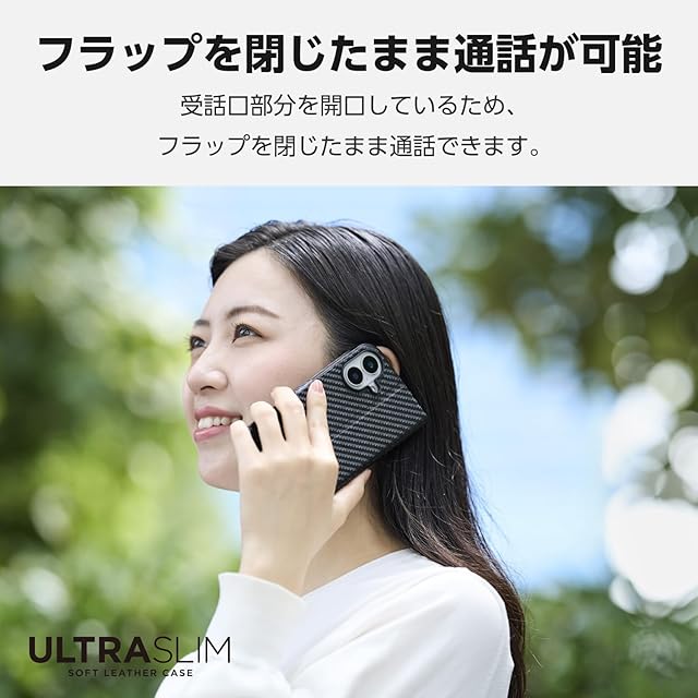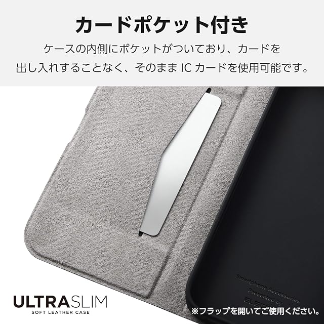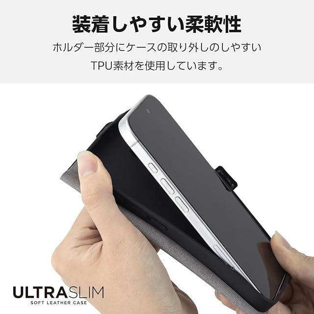 端末の薄さや軽さを損ねない、薄型・超軽量なウルトラスリムタイプのソフトレザーケース(手帳型)です。