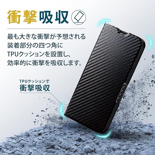 商品名:エレコム iPhone 13 Pro Max/レザーケース/手帳型/カーボン調(ブラック)