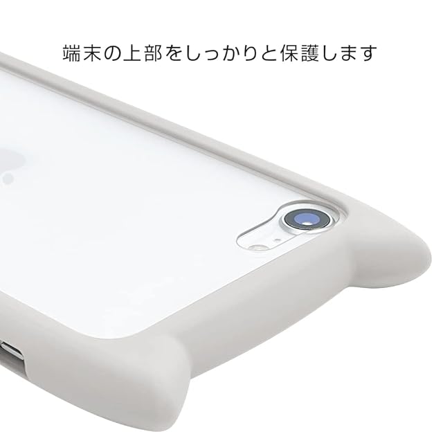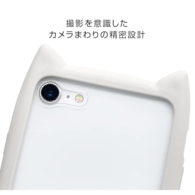 商品名:ラスタバナナ iPhone SE3 SE2 8 7 共用 ケース カバー ハイブリッド 背面強化ガラス 背面クリア TPUバンパー+GLASS mimi 猫 ネコ 猫耳 かわいい おしゃれ グレー アイフォンse スマホケース 6831IP247HB