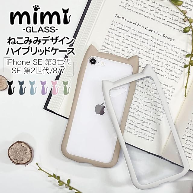 ラスタバナナ iPhone SE3 SE2 8 7 共用 ケース カバー ハイブリッド 背面強化ガラス 背面クリア TPUバンパー+GLASS mimi 猫 ネコ 猫耳 かわいい おしゃれ グレー アイフォンse スマホケース 6831IP247HB | LIS MART