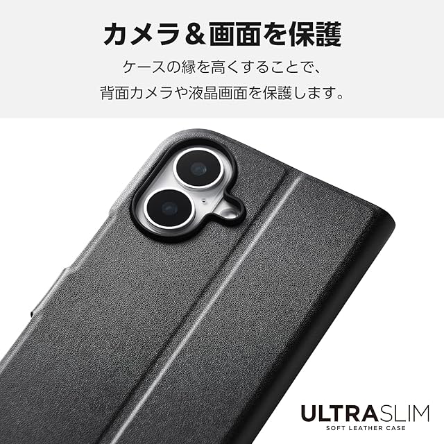 エレコム iPhone 16 ケース カバー 手帳型 薄型 軽量 ソフトレザー 磁石付き カードポケット×1 ワイヤレス充電対応 スタンド機能 4つ角エアークッション UltraSlim ブラック PM-A24APLFUBK | LIS MART