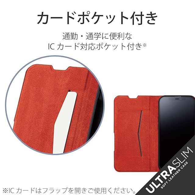 本体の薄さ、軽さを損ねない薄型・超軽量なウルトラスリムタイプのiPhone 13 Pro用ソフトレザーケース(手帳型)です。