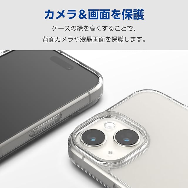 商品名:エレコム iPhone15 ケース 耐衝撃 衝撃吸収 ハイブリッド素材 四つ角エアークッション ストラップホール付き クリア PM-A23AHVCKCR