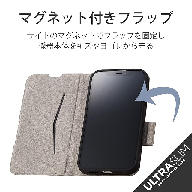 本体の薄さ、軽さを損ねない薄型・超軽量なウルトラスリムタイプのiPhone 13 Pro用ソフトレザーケース(手帳型)です。