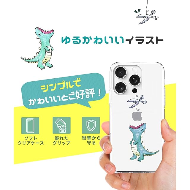 AKAN iPhone 16 ケース ソフトクリアケース [ 透明 密着痕防止 TPU 変色しにくいUVプリント 防塵 ワイヤレス充電 ] かわいい 人気 キャラクター アップル アイフォンケース AK26991i16 はらぺこザウルス グリーン 【国内正規品】 | LIS MART
