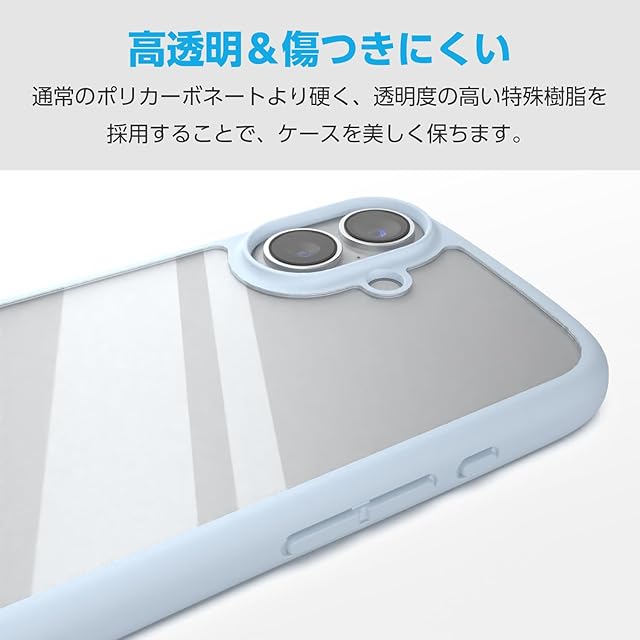 商品名:エレコム iPhone 16e ケース 背面クリア 透明 耐衝撃 衝撃吸収 軽量 薄型 ワイヤレス充電対応 MagSafe メタルリング シール付 ストラップホール/ショルダーストラップシート付 ライトブルー PM-A25STSLFCBU
