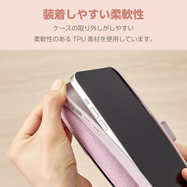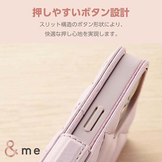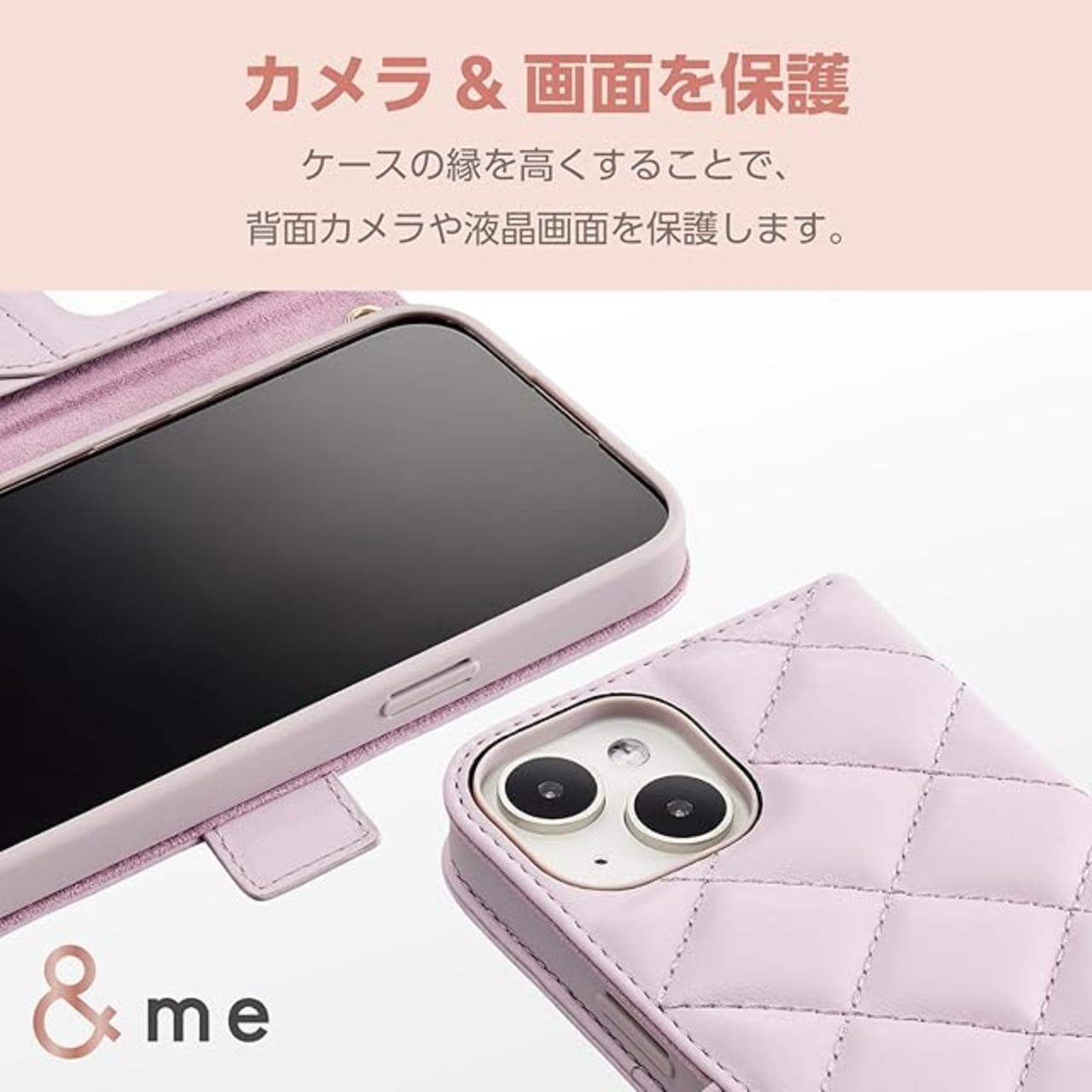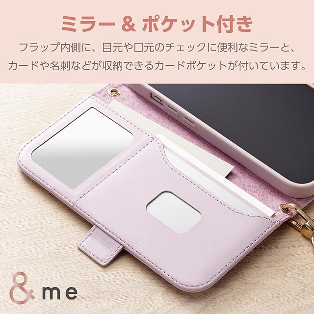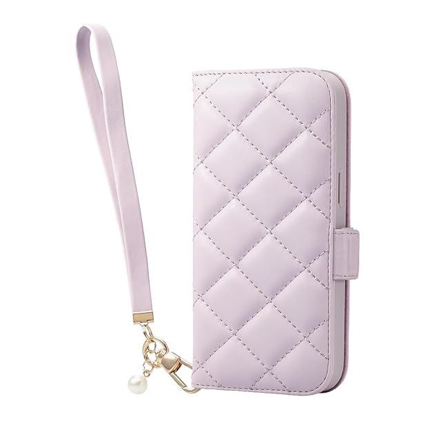 商品名:エレコム iPhone15 ケース &me 手帳型 コンパクトミラー付き ハンドストラップ付き カードポケット×2 キルトデザイン ラベンダー PM-A23APLFJM4PU