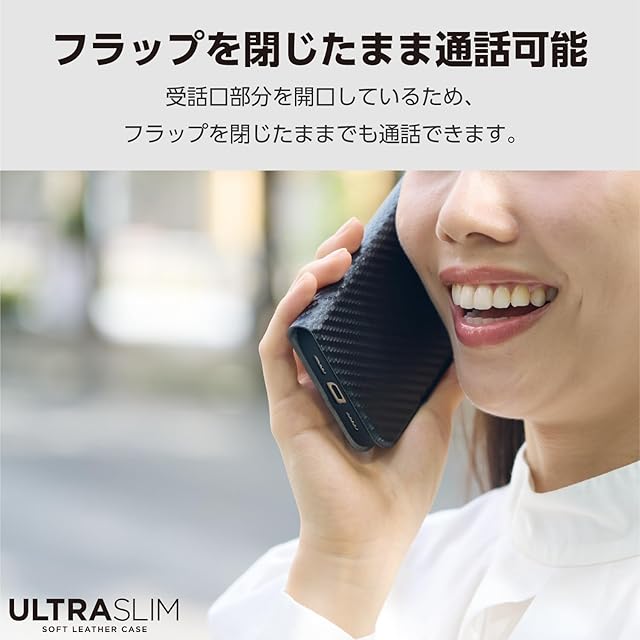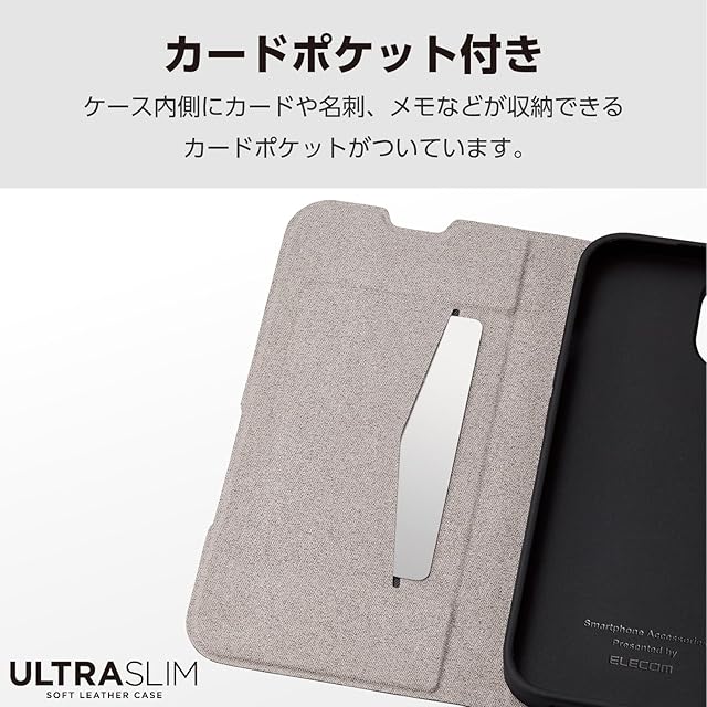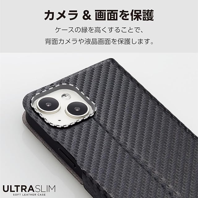 商品名:エレコム iPhone15 ケース 手帳型 UltraSlim 薄型 スリム マグネット開閉 カードポケット スタンド機能 [驚くほど薄くて軽い] カーボンブラック PM-A23APLFUCB