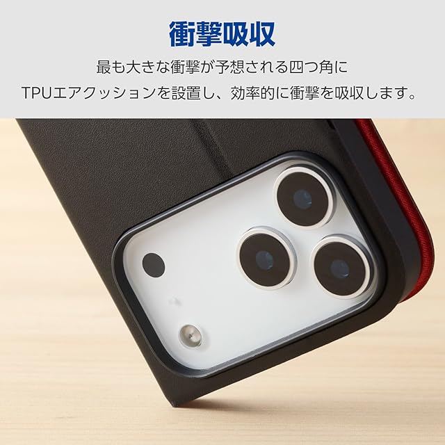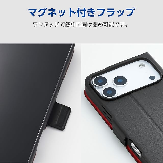 商品名:エレコム iPhone 17 Pro Max ケース カバー 手帳型 薄型 軽量 ソフトレザー TPU 磁石付 カードポケット スタンド機能 4つ角エアークッション UltraSlim ブラック PM-A25DPLFUBK