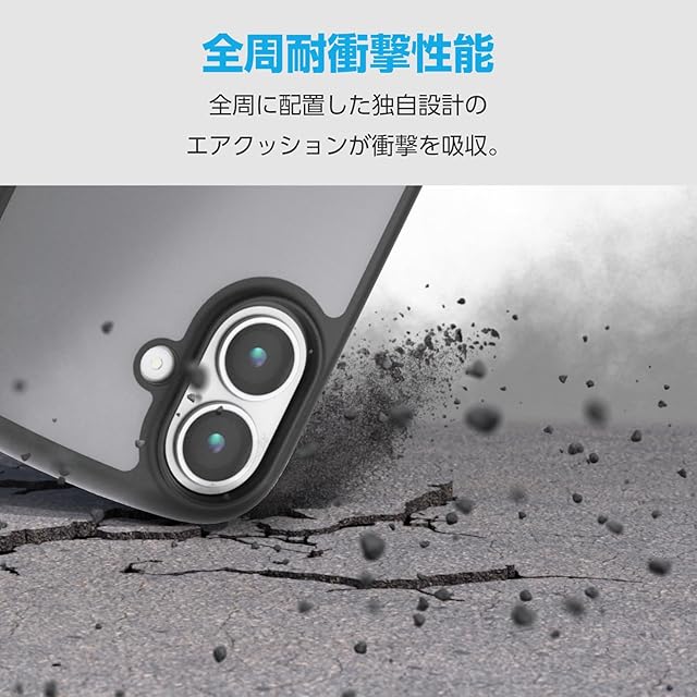 商品名:エレコム iPhone 16e ケース 背面クリア 透明 耐衝撃 衝撃吸収 軽量 薄型 ワイヤレス充電対応 MagSafe メタルリング シール付 ストラップホール/ショルダーストラップシート付 マットブラック PM-A25STSLFCBKM